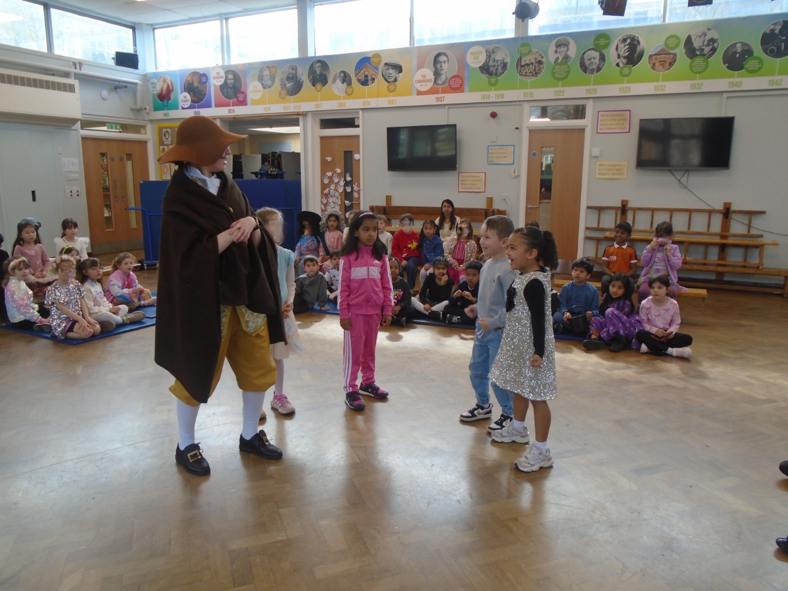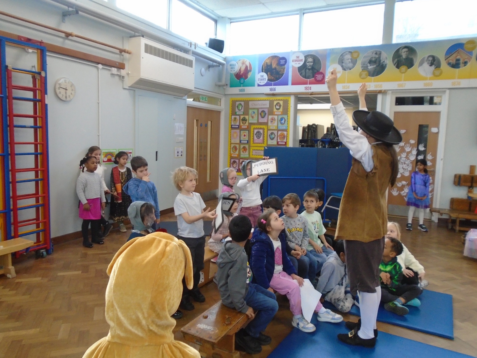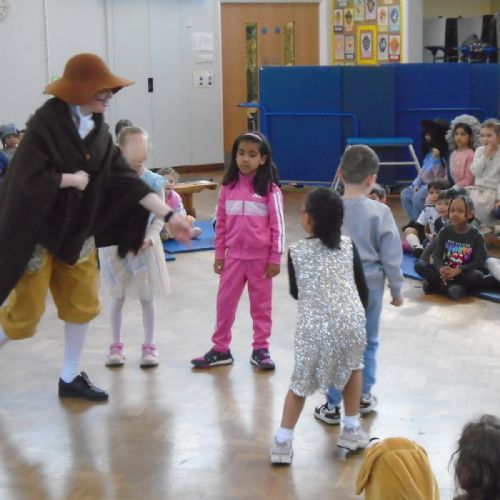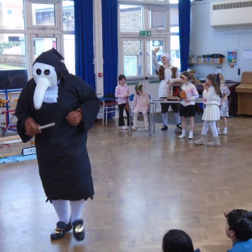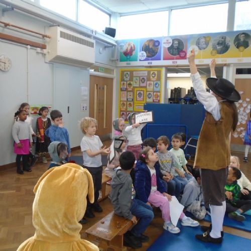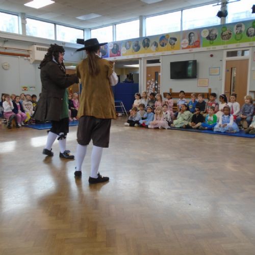 Year 1 had an amazing visit from Rainbow Theatre London, who performed an immersive re-enactment of the Great Fire of London. The children were taken back to 1665 and 1666 where they met King Charles II and Samuel Pepys amongst many others. Every child had a part in exploring what life would have been like during those times and did a wonderful job in helping to act out these events. The staff were impressed at the children's prior knowledge and we all had a lot of fun!